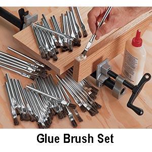 Glue Brush Set (50 pcs) - The best guarantee for a fail-safe glue joint is to spread the glue evenly over the entire surface. The best way to spread glue is with one of these disposable glue brushes. Small enough to fit into tight mortises, yet large enough to spread glue quickly, these glue brushes belong in every woodshop. Plumbers and pipe fitters also use these brushes for flux and pipe dope. Contains twenty-five - 5/16", and twenty-five - 1/2"