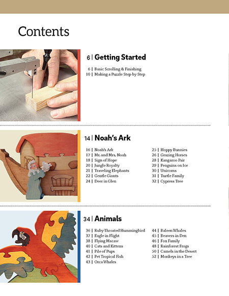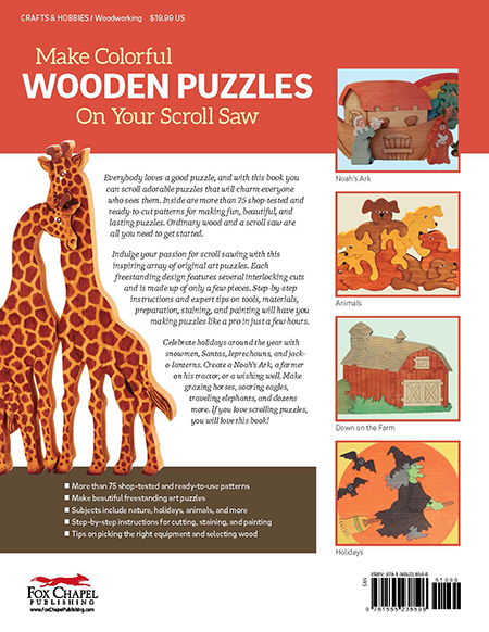 Everybody loves a good puzzle, and with this book you can scroll entertaining puzzles that will delight everyone who sees them. Inside are more than 75 shop-tested and ready-to-cut patterns for making fun, beautiful, and lasting puzzles. Ordinary wood and a scroll saw are all you need to get started. Indulge your passion for scroll sawing with this inspiring array of original art puzzles. Each freestanding design features several interlocking cuts, and is made up of only a few pieces. Step-by-step instructions and expert tips on tools, materials, preparation, staining, and painting will have you making puzzles like a pro in just a few hours. Celebrate holidays around the year with snowmen, Santas, leprechauns, and jack-o-lanterns. Create a Noah’s Ark, a farmer on his tractor, or a wishing well. Make grazing horses, soaring eagles, traveling elephants, and dozens more. If you love scrolling puzzles, you will love this book. Burns. 128 pgs.