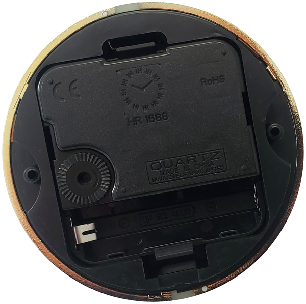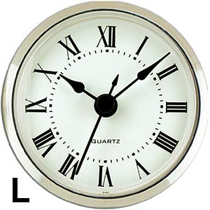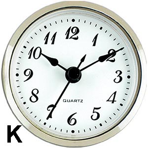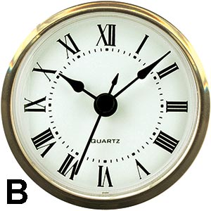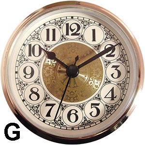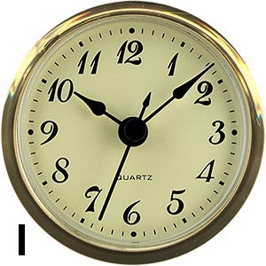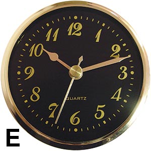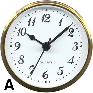 3 1/2" Quartz Clock Inserts with gold or silver plastic bezels and clear plastic lens. Hole size is 3" with a mounting depth of 5/8". Uses spring clips for mounting. One AA battery required per clock - NOT INCLUDED.  Get clean and precise holes with a Forstner Bit or Carbide Forstner Bit.