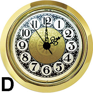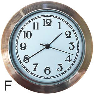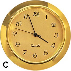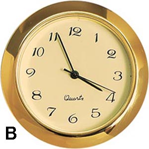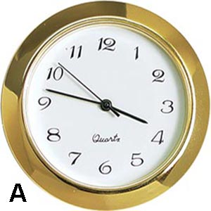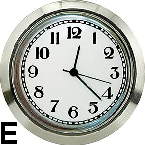 1 7/16" (35 mm) Economy Clock Inserts have glass lenses with plastic frames and uses spring clips for mounting. Button Batteries are included. Uses a 1 3/8" hole size with a 1/4" mounting depth. Get clean and precise holes with a Carbide Forstner Bit.
