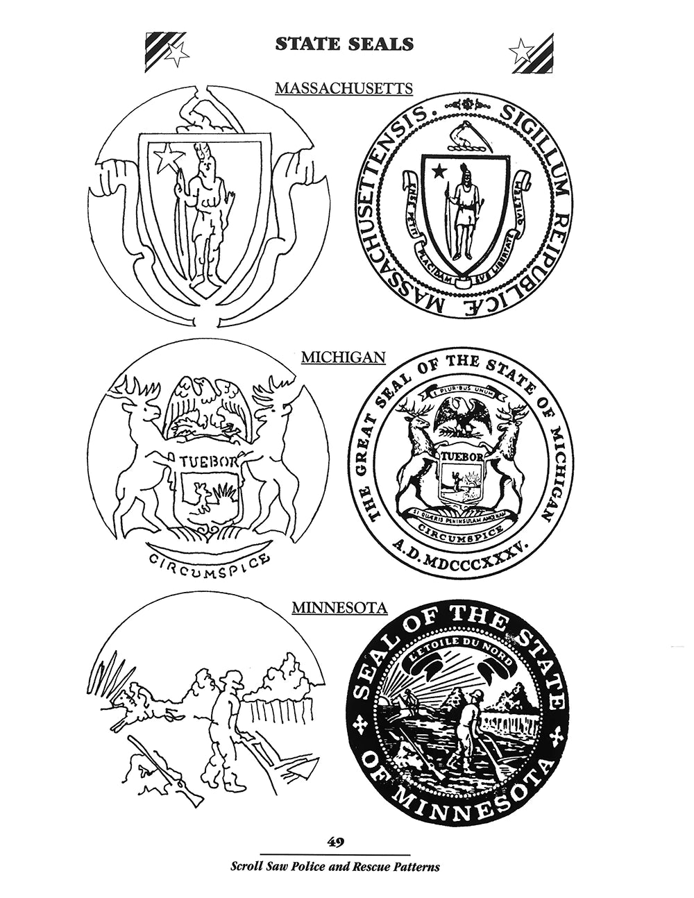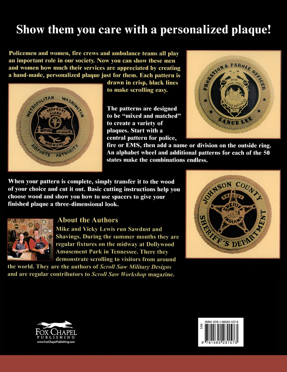 Endless mix-and-match combinations for personalized police and rescue plaques. Start with a central shield pattern for police, fire or EMS; then add a name or division on the outside ring. An alphabet wheel and additional patterns for each of the 50 states allow you to make literally hundreds of different plaques. 64 pgs. Lewis