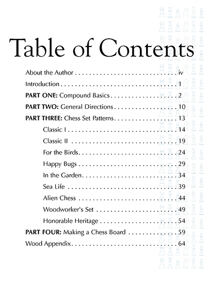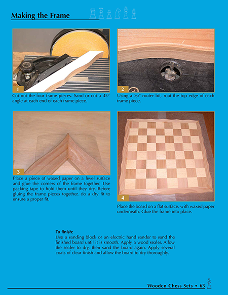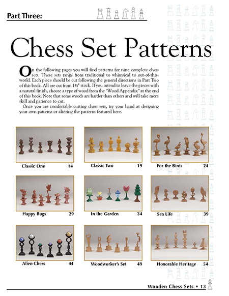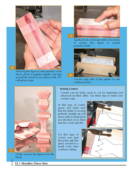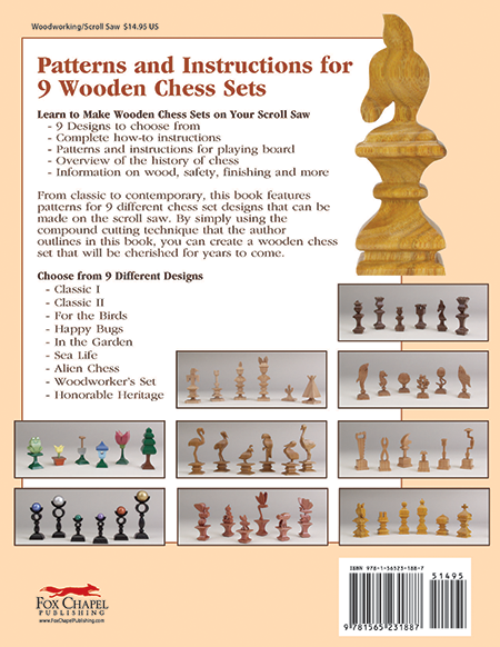 Handcraft a classic or contemporary chess set that will be cherished for years to come. You will learn to create each piece by using compound cuts on the scroll saw. Patterns and full-color photographs for each of the playing pieces (king, queen, bishop, knight, rook, pawn) are included. Instructions and pattern for a beautiful inlay playing board also included. 72 pgs. Thompson