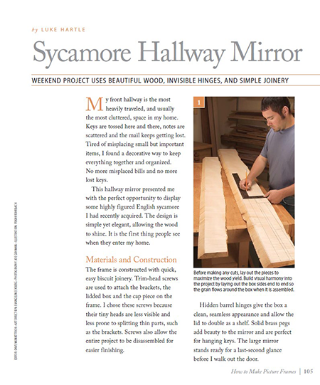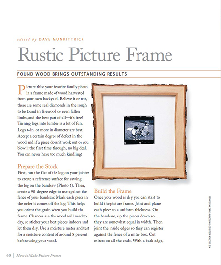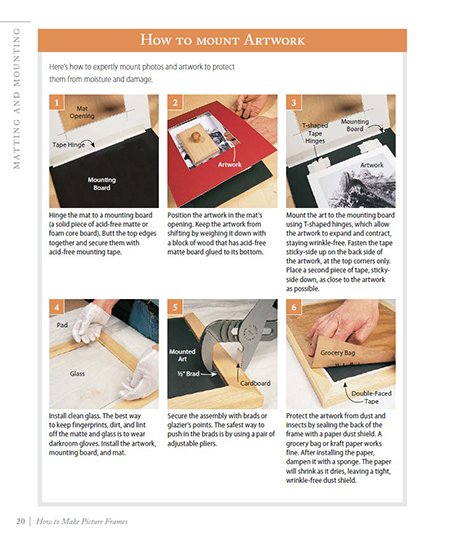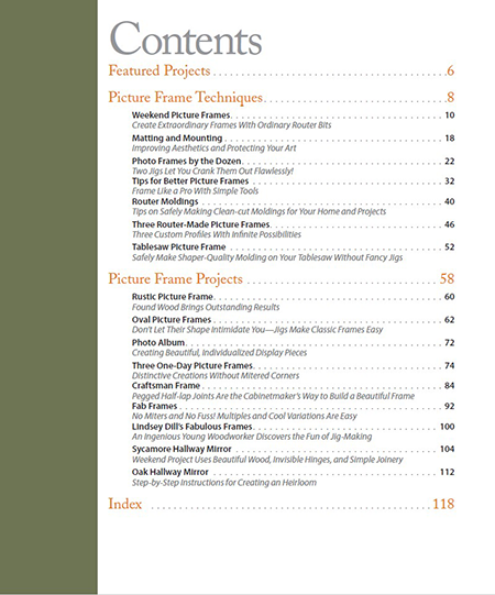 A collection of some of the best framing projects published by American Woodworker magazine with expert step-by-step instructions, workshop tips and matting and mounting instructions. Add a special touch to cherished photos or artwork with hand-made picture frames. The experts at American Woodworker give step-by-step instructions using a variety of woods and styles.