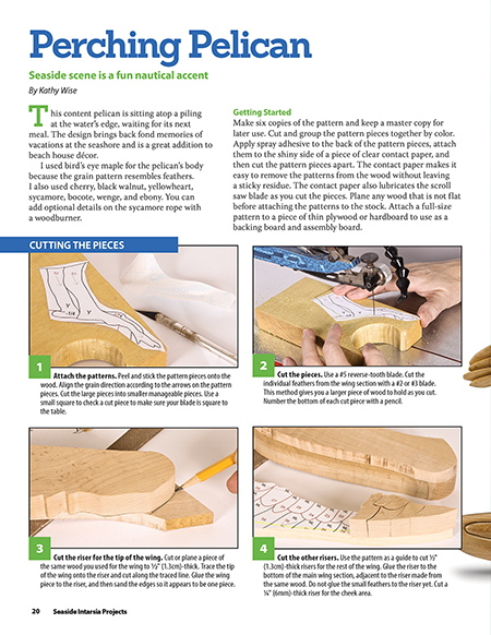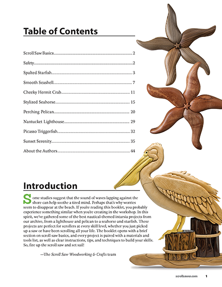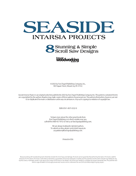 Seaside Intarsia Projects is a best-of Scroll Saw Woodworking & Crafts collection of eight beautiful, ocean- and beach-themed designs – from a simple starfish to a more challenging hermit crab, pelican, and seahorse – that are sure to build your intarsia skills. Featuring step-by-step instructions, coordinating photography, full-size patterns, painting and finishing tips, and expert guidance, also included are helpful opening sections on materials, safety, tools, and techniques. 44 pgs. 11" h x 8 1/2" w